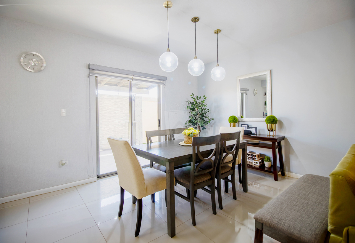 ¡Disfruta de la zona más exclusiva de Mexicali! Además haz uso de sus amenidades como alberca y áreas verdes. 3 recamaras | 2.5 baños | Area de sala, comedor y cocina | Cuarto de lavado | Area de TV | Patio | Cochera Equipamiento: - A/C: 2 aparatos centrales de 3 ton. - Boiler electrico de 40 gal - Porcelanato en interiores - Lamparas de techo - Persianas - Cocina integral con estufa con extractor, microondas y refrigerador - Closets - Muebles de baño - Preparacion para instalar lavadora y secadora - Area de TV en planta alta - Patio posterior con pergola, piso de concreto y pasto sintético. - Huellas para carro. - Bardas y cerco electrificado. ¿Te interesa esta propiedad? Comunicate con nuestro equipo en Mercado de Casas.